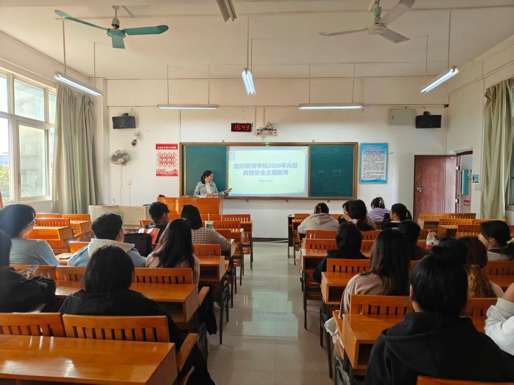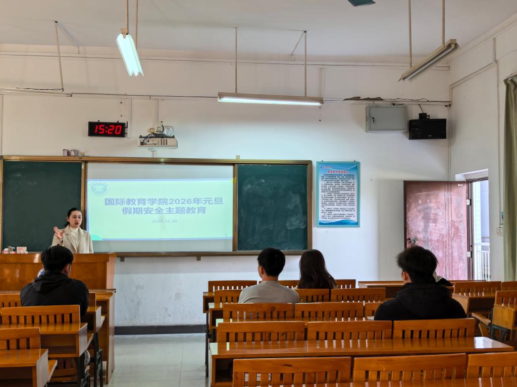 2025年12月30日,元旦假期前夕,国际教育学院组织各班班主任召开元旦假期安全教育主题班会,筑牢假期安全防线,传递节日关怀。