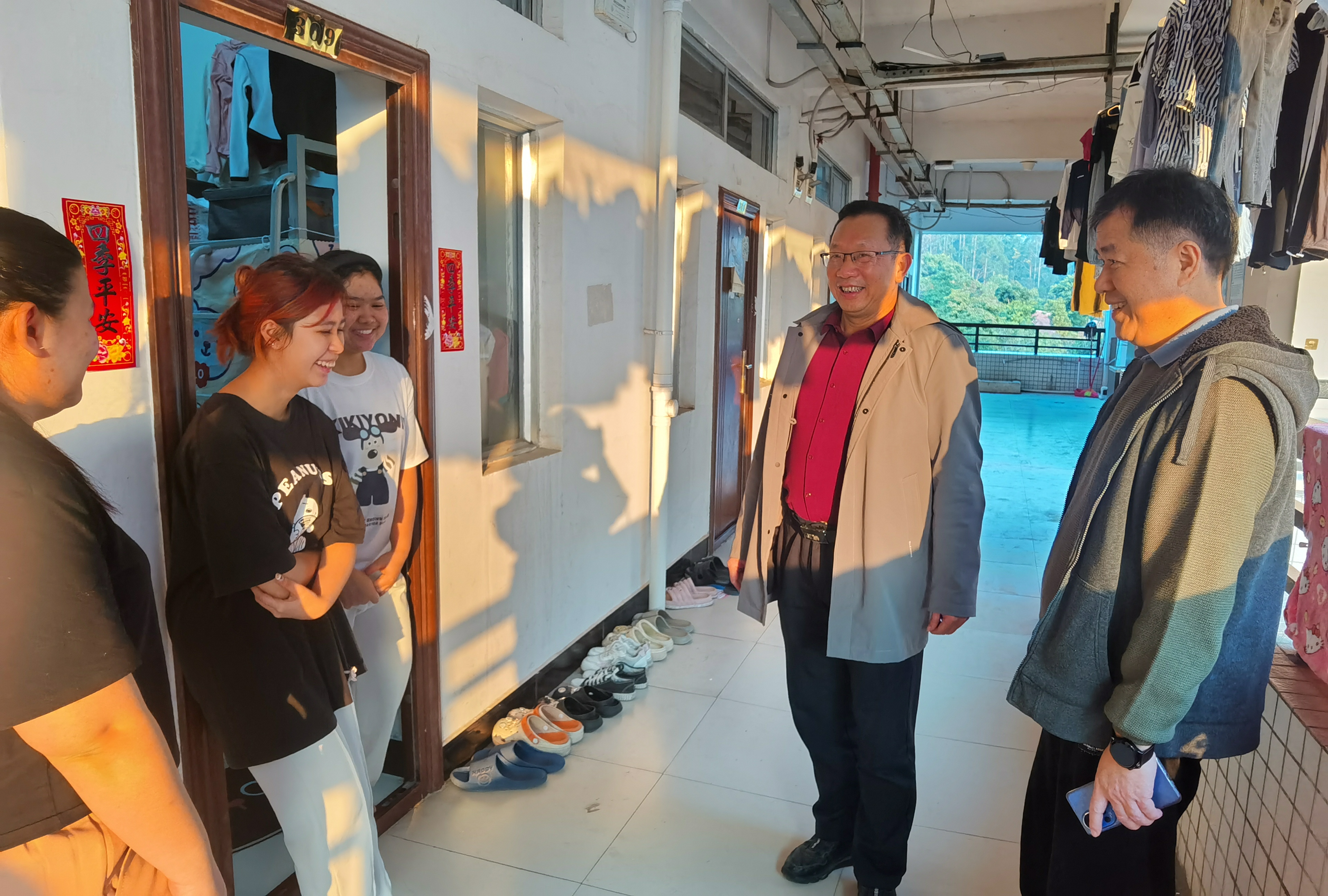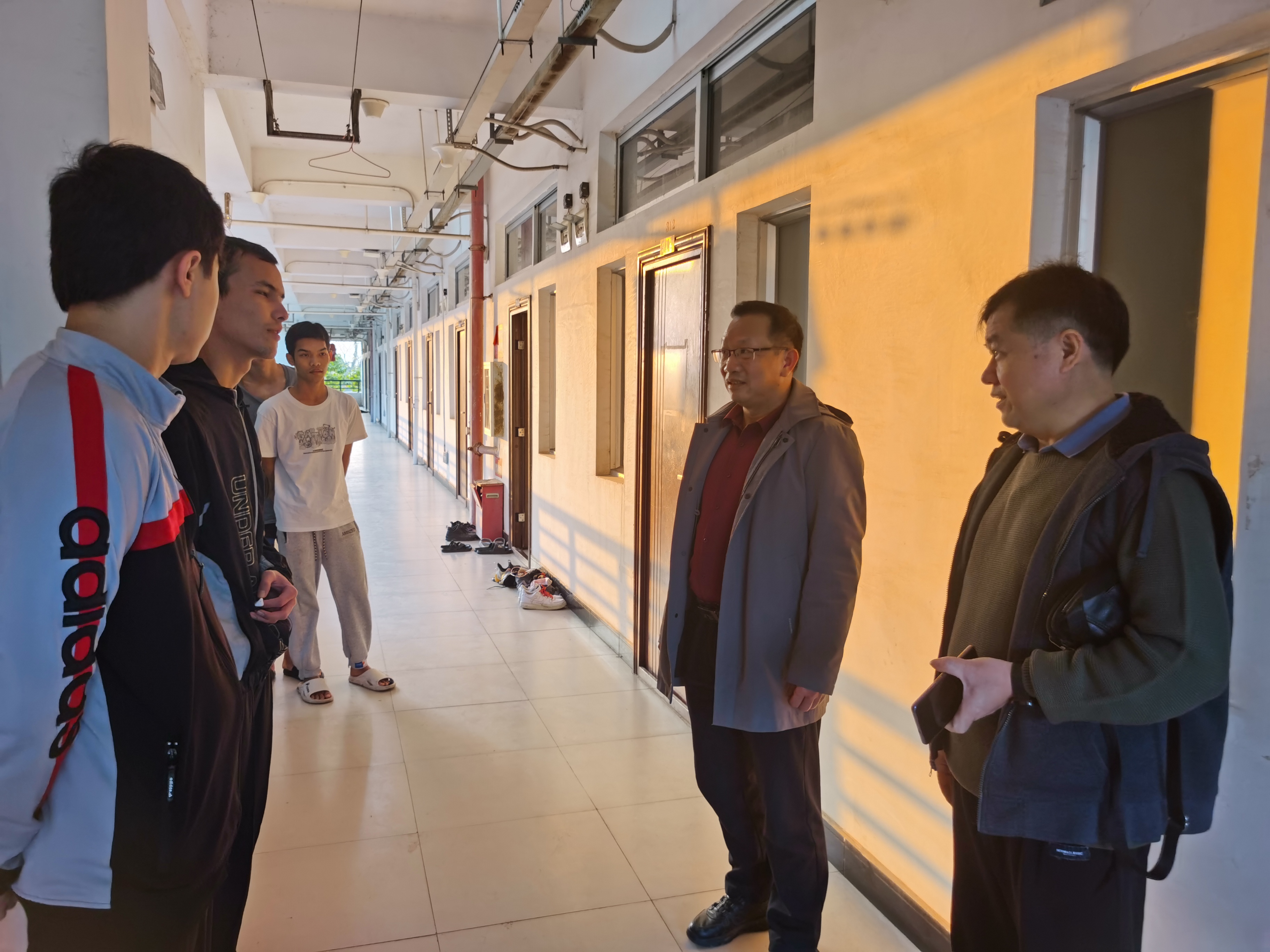 走访过程中,石维有与留学生亲切交谈,细致查看留学生的住宿环境,详细了解他们留校期间的具体安排。石维有向留学生表达了关怀与祝福,强调学校始终致力于为学生提供更优质的学习环境和服务,同时提醒同学们寒假期间要注意人身、财产及消防安全,注意防寒保暖,遇到困难和异常情况要及时向学校反馈。希望留学生们合理规划寒假时间,进一步加强中文学习,领略中国传统文化的魅力,度过一个充实而有意义的寒假。
